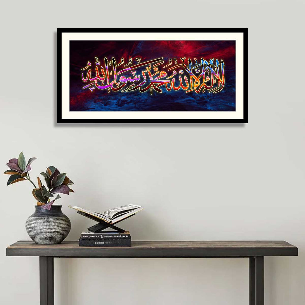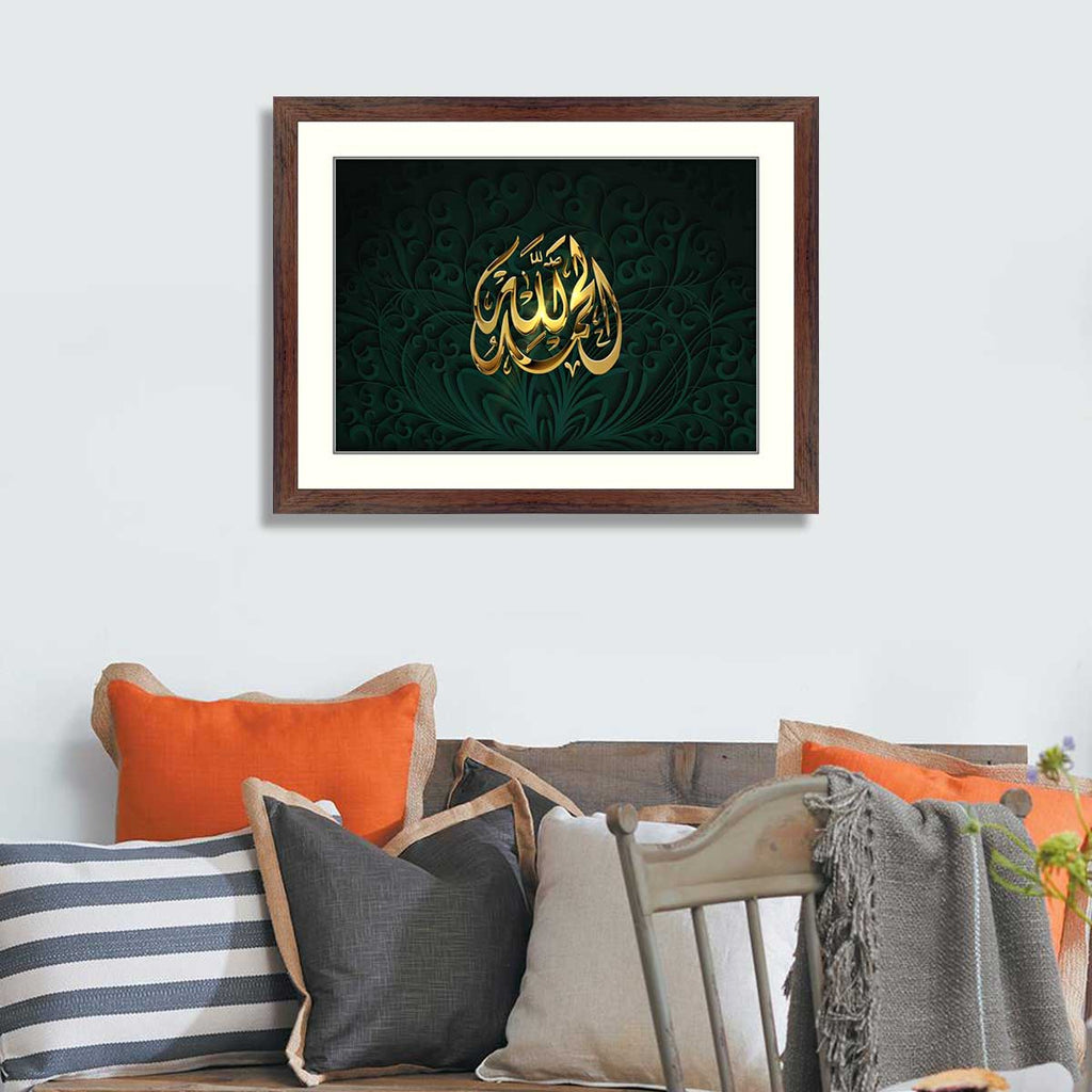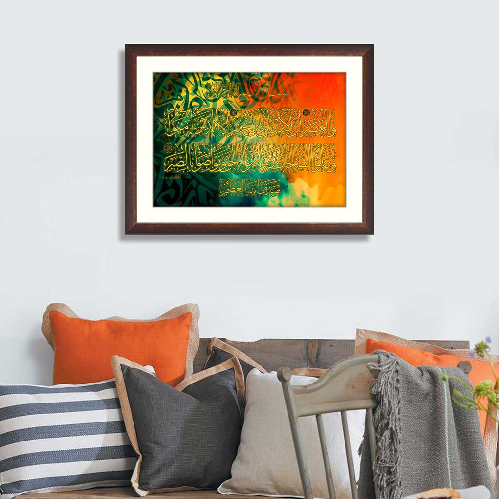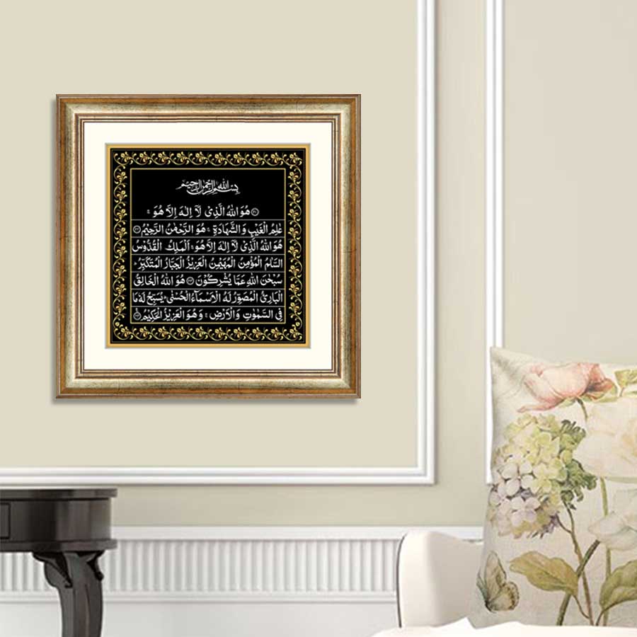 Lohay Qurani handmade oil painting on canvas with inner border and italian style Antique Gold moulding