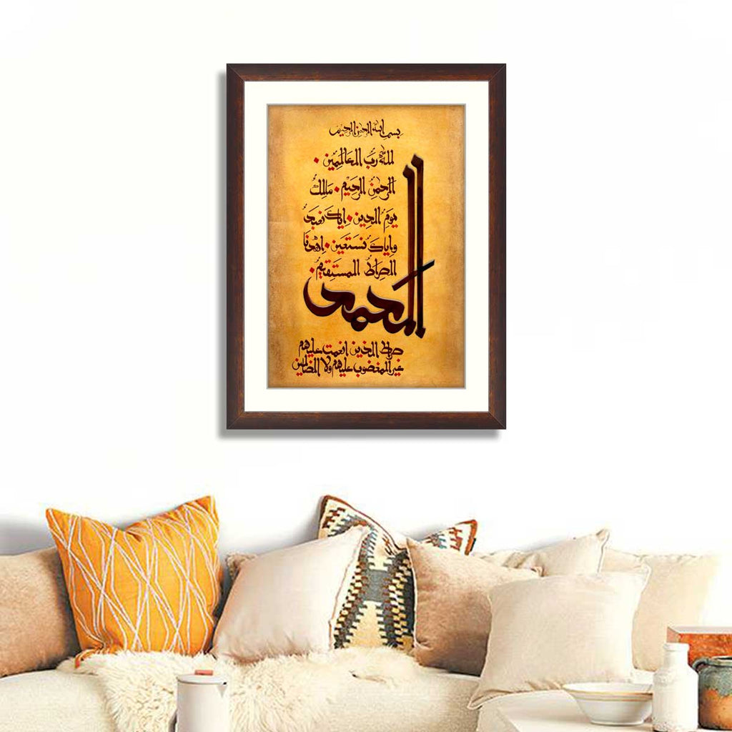 Sura Al-Fatah Handmade Calligraphy in Mushaq style with gold frame