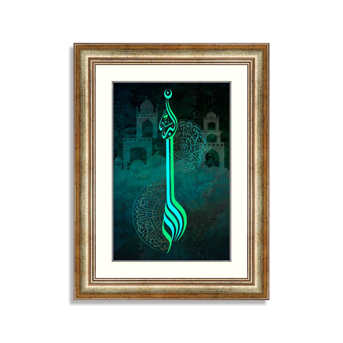 Islamic calligraphy Allahu Akbar in the style of a mosque