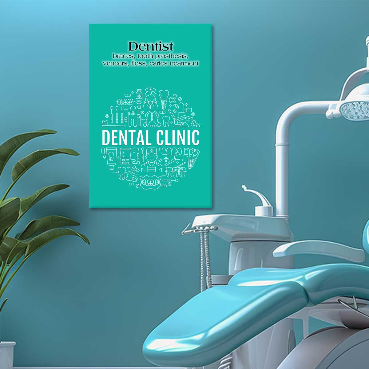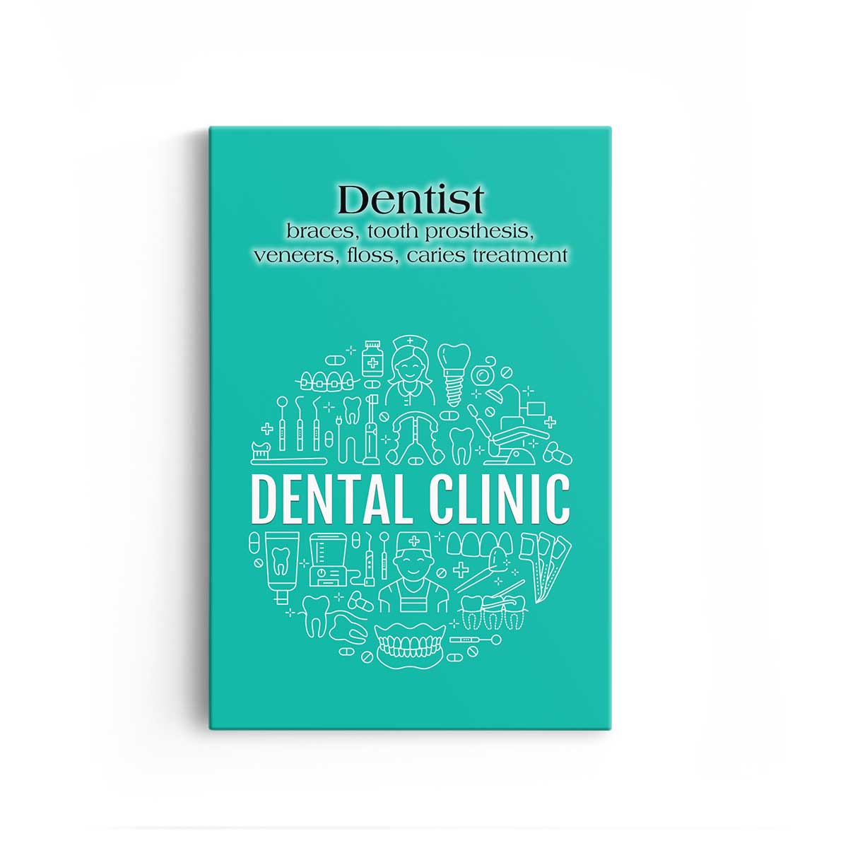Dentist, braces, tooth prosthesis, veneers, floss, caries treatment
