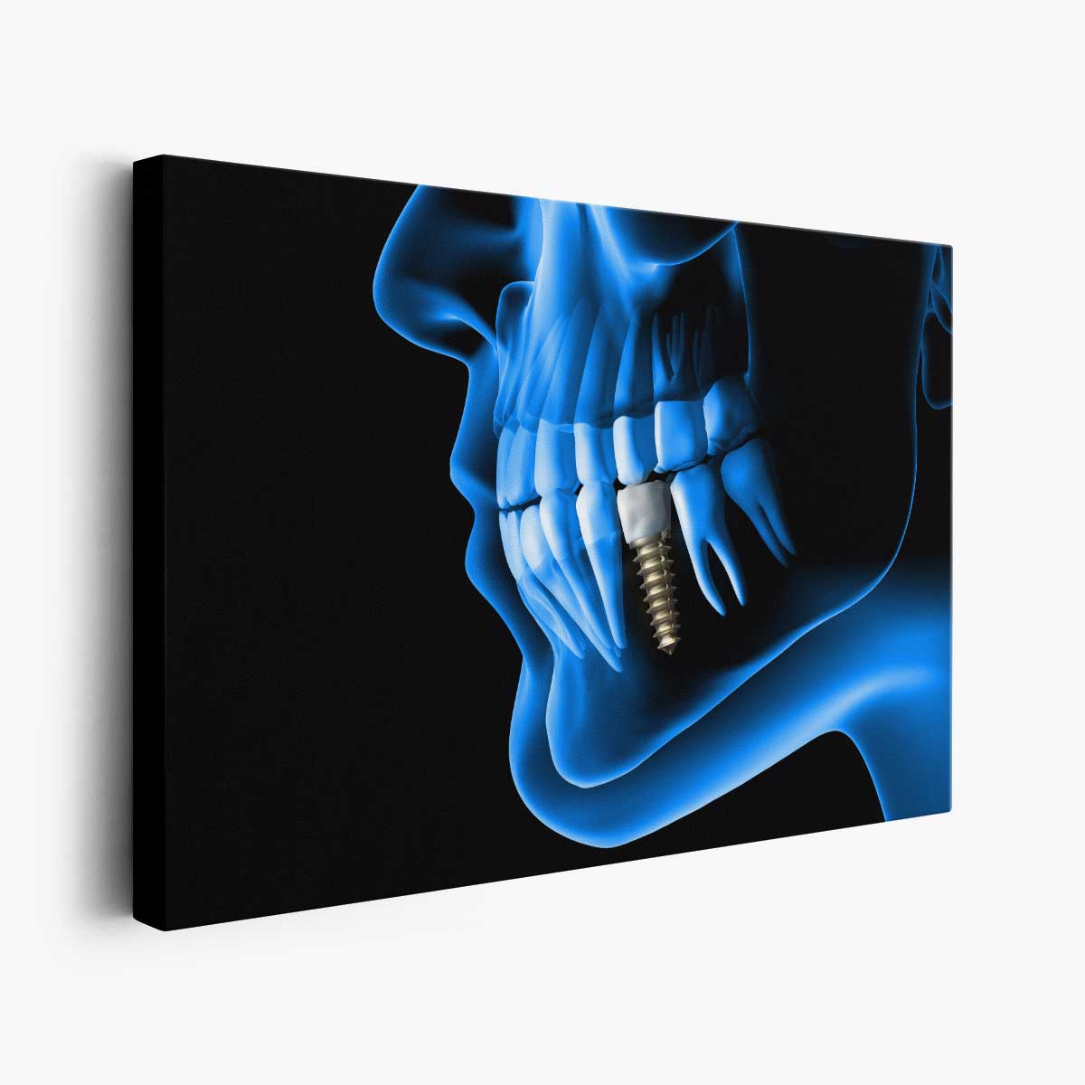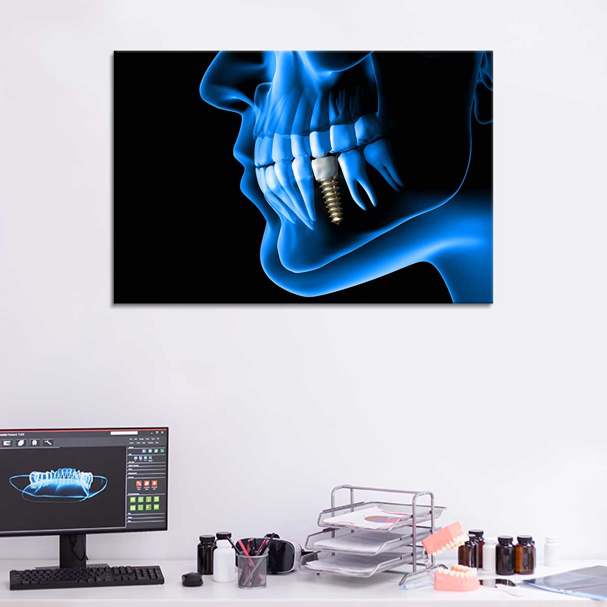 X ray view of denture with implant. Xray view. 3d rendering